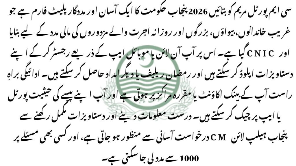This guide explains everything about CM Portal Maryam Ko Batain 2026, from registration to payment, in simple and easy words. You can follow step by step and get your aid without any confusion.